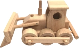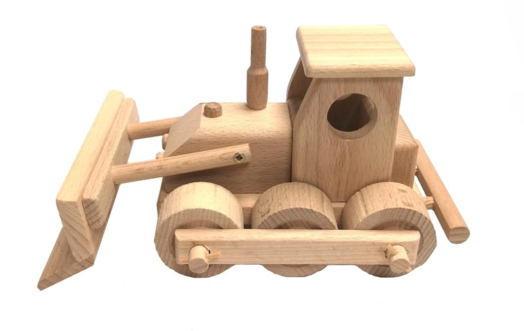 Buldozer nabízí realistickou hru díky pohyblivé přední radlici a spolehlivě se otáčejícím dřevěným kolečkům.