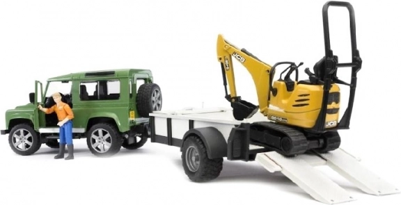 Přívěs se sklopnými nájezdy umožňuje snadnou přepravu žlutého minibagru, který je vybaven otočnou kabinou a funkčním ramenem se lžící. Minibagr je plně kompatibilní s dalšími figurkami Bworld, což z něj činí dokonalý doplněk každé dětské staveniště.