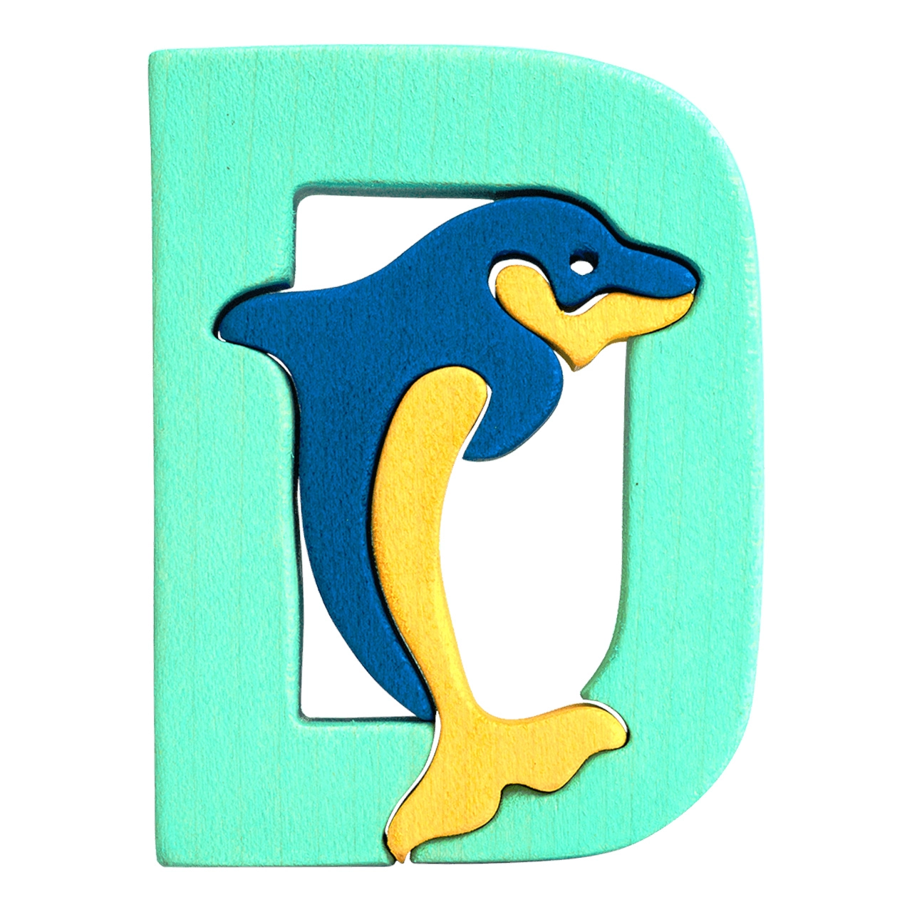 Toto dřevěné písmenko D s veselým delfínem pomáhá dětem poznávat tvary a písmena přirozeně při hře. Jednotlivé části přesně zapadají na své místo, takže se děti učí soustředění, trpělivosti a koordinaci oko–ruka.