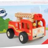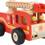 Toto dřevěné hasičské auto potěší malé záchranáře realistickými detaily a odolnou konstrukcí. Otočný a výsuvný žebřík umožňuje dosáhnout i na těžko přístupná místa, zatímco hladce se točící kola zajišťují plynulou jízdu po pokoji. Dvě postavičky hasičů s přilbami dodají příběhům správnou dávku napětí a fantazie.