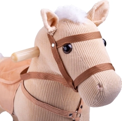 Béžový houpací kůň je navržen tak, aby dětem poskytl bezpečnou a pohodlnou jízdu. Měkké sedlo a uzdečka z jemného manšestru lákají k doteku a hra tak rozvíjí nejen představivost, ale i motorické dovednosti. Robustní dřevěná základna zajišťuje jisté houpání bez nežádoucího kymácení.