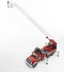 Model potěší promyšlenými funkcemi: otevíratelná kabina, sklopná vnější zrcátka, čelní okno z odolného polykarbonátu a možnost nahlédnout pod kapotu na motor. Měkké profilované pneumatiky zvládnou každý terén a koš žebříku je vybaven držákem hadice s navíjením pomocí boční kličky. Kompatibilita s figurkami Bworld rozšiřuje možnosti hry.
