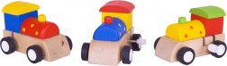 Mašinky jsou dostupné ve třech výrazných barevných variantách, které podněcují dětskou fantazii a podporují rozvoj jejich vnímání barev.