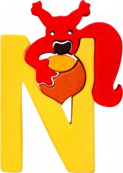 Vkládací puzzle s písmenem N a roztomilou veverkou je ideální pomůckou pro předškoláky. Děti se zábavně naučí základy abecedy, procvičí si jemnou motoriku a orientaci v tvarech. Díly do sebe snadno a přesně zapadají, což podporuje úspěch a radost z učení.