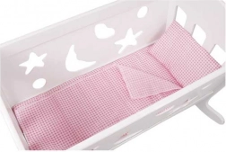 Kolébka je vyrobena z odolného dřeva, má stabilní houpací lišty a je dodávána včetně měkké výbavy – matrace, polštářku a přikrývky. Ideální pro každodenní hraní doma i ve školce, kde děti rozvíjejí empatii, představivost a komunikační dovednosti.