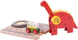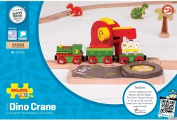 Dinosauří jeřáb Bigjigs Rail přináší na vaši dřevěnou vláčkodráhu dávku dobrodružství. Děti pomocí pohyblivého krku dinosaura a magnetu přemísťují dinosauří vejce na přiložený vagónek a trénují koordinaci ruka–oko. Pestrobarevné provedení a pevná dřevěná konstrukce lákají k fantazijní hře, která vydrží.
