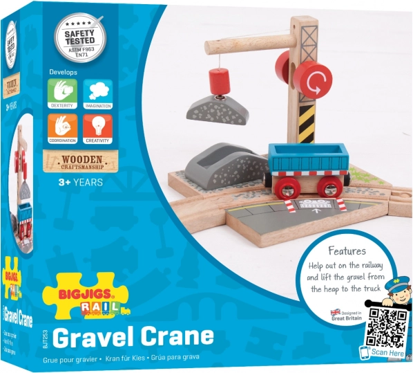 Bigjigs Rail dřevěná vláčkodráha jeřáb se štěrkovým systémem je skvělým doplňkem každé dětské kolekce vláčkodráh. Tento kvalitní jeřáb je vybaven magnetickou kladkou, která umožňuje snadné zvedání a spouštění nákladů, což podporuje kreativní a interaktivní hru.