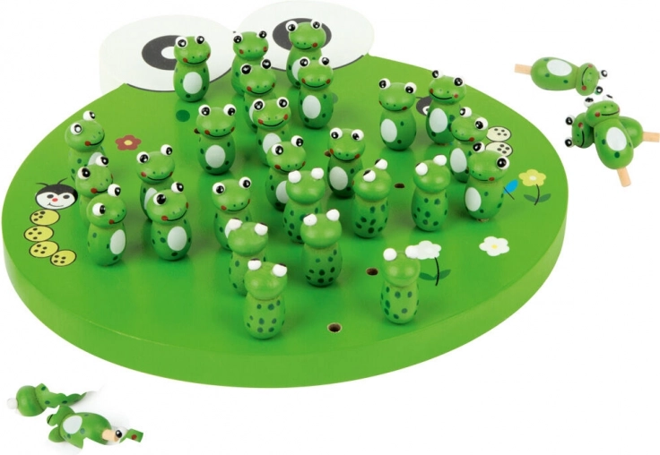 Dětská dřevěná hra Solitér ve tvaru žáby od small foot přináší klasickou logickou zábavu v roztomilém provedení. Cílem je po skocích odebírat žabky a zanechat co nejméně figurek na desce. Podporuje logické myšlení, koncentraci a strategické plánování. Díky kompaktním rozměrům je skvělá na cesty a její odolné dřevěné zpracování a barevný design potěší děti i rodiče.