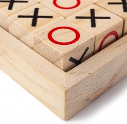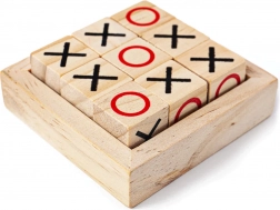 - 9 hracích kamenů (X a O), dřevěná úložná základna