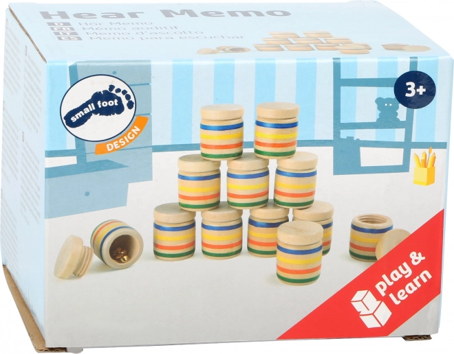 Sada obsahuje 12 dřevěných dóz se šroubovacím uzávěrem, které z této zvukové hry činí skvělého trenéra paměti. Každá dvojice dóz má stejný obsah a vaše úloha je daný pár najít podle zvuku. Můžete do nich vložit různé materiály - od korálků až po zvonečky, a zkoumat, zda dokážete rozpoznat rozdíl.