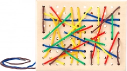 Tato nadčasová dřevěná provlékací deska je ideální pomůckou pro děti od 3 let. Pevná dřevěná konstrukce a pestré šňůrky lákají k tvoření a opakovanému procvičování dovedností. Děti mohou volně experimentovat, vytvářet vlastní vzory a přitom zlepšovat svou soustředěnost a trpělivost.