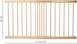 Tato univerzální branka z kvalitního smrkového dřeva je navržena pro bezpečné oddělení prostor v domácnosti. Šířka 72–122 cm umožňuje montáž do většiny standardních průchodů a na schodiště. Zaoblené hrany a precizně vyhlazený povrch zvyšují bezpečnost a komfort každodenního používání.