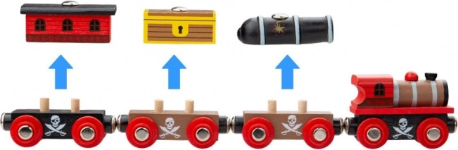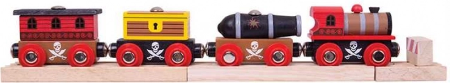 Pirátský vlak od Bigjigs Rail je ideální volbou pro malé dobrodruhy. Tato sada obsahuje lokomotivu a tři detailně zpracované vagónky s klasickým magnetickým spojováním. Kompatibilní se všemi dřevěnými železničními systémy.