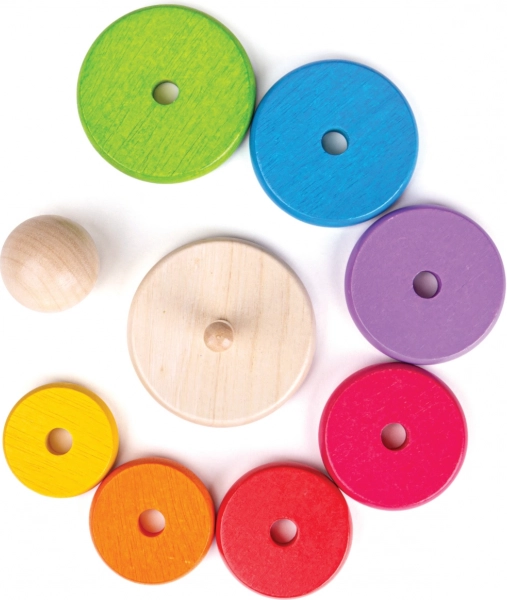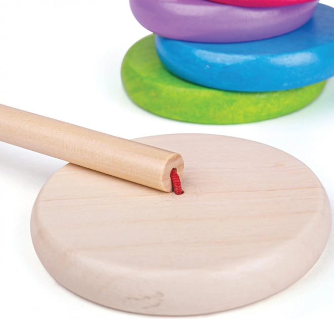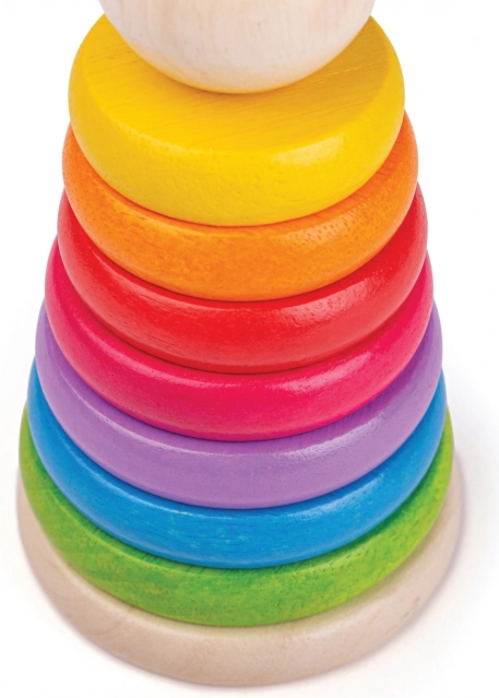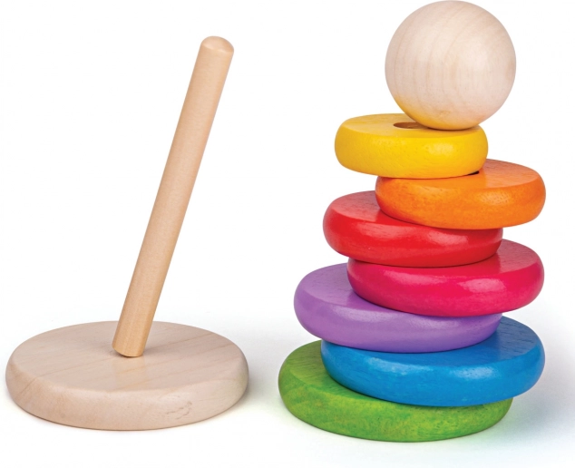 Tento dřevěný stohovací panáček je ideální hračkou pro rozvoj jemné motoriky a koordinace rukou a očí. Stohování kroužků dle velikosti nejen baví, ale také učí děti rozlišovat velikosti a barvy.