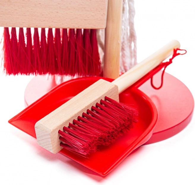 Dětský úklidový set v červeném provedení podporuje nápaditou hru a přirozeně vede děti k učení domácích prací. Díky pevné dřevěné konstrukci a promyšlenému stojanu mají všechny díly své místo, takže úklid po hře je stejně snadný jako samotná zábava.