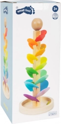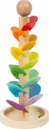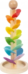 Dřevěná kuličková dráha Small Foot promění každé spuštění kuličky v malý koncert. Jak skleněná kulička klouže po barevných lístcích, vznikají postupně vyšší až nižší tóny, které podněcují sluchové vnímání a přinášejí dětem uklidňující i zábavný zážitek. Robustní dřevěná konstrukce se stabilní základnou a hladkým povrchem je příjemná na dotek a připravená na každodenní hraní.