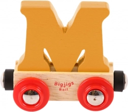 Tento kvalitní dřevěný vagónek s písmenem M rozšíří každou vláčkodráhu o hravý vzdělávací prvek. Písmeno je snímatelné a můžete ho libovolně kombinovat s dalšími písmeny či číslicemi – vytvořte jméno, přezdívku nebo vzkaz. Magnetické spojky zajišťují snadné propojení s ostatními vagónky a lokomotivami v systému Bigjigs Rail i dalších běžných dřevěných vláčkodrah.