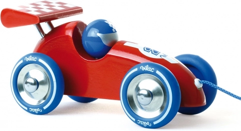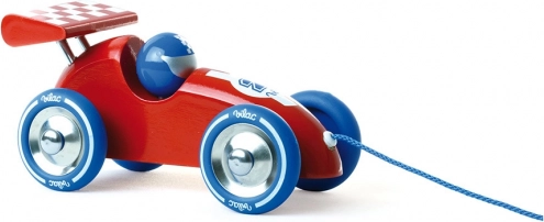 Stylové tahací závodní autíčko z lakovaného dřeva v červeno-modré kombinaci potěší malé závodníky od 1 roku. Má pogumovaná kovová kola pro tichou a jistou jízdu, pevnou šňůrku pro tahání a kvalitní zpracování VILAC. Ideální pro rozvoj rovnováhy a koordinace pohybů a pro zábavu doma i na cestách. Vyrobeno ve Francii.