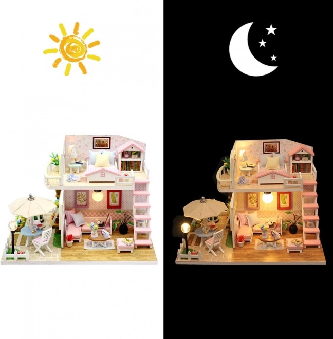 Součástí je LED osvětlení (2 lampičky) pro útulnou atmosféru. Napájení: 2× AAA 1,5 V a 3× LR54 1,5 V (baterie nejsou součástí balení). Srozumitelný návod s obrázky a přibalené nástroje zajišťují pohodlné sestavení i pro začátečníky.