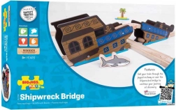Most vraku lodi Bigjigs Rail dodá vašemu železničnímu světu dobrodružnou atmosféru. Dva pevné díly snadno sestavíte do působivého přemostění nebo průjezdu, takže vláčky mohou jezdit přes i skrze dekorovaný vrak. Téma pirátů a mořských vln podněcuje kreativní příběhy a dlouhé hodiny zábavy.