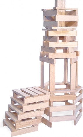 Tato nadčasová dřevěná stavebnice nabízí dětem nekonečné možnosti tvorby – od věží a mostů až po originální architektonické modely. Jednotné rozměry dílků (10,5 × 2 × 0,7 cm) umožňují stabilní konstrukce bez nutnosti spojovacích prvků. Díky přírodnímu provedení je hra nejen zábavná, ale i edukativní.