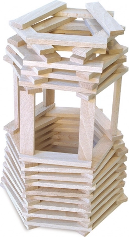 Jednotlivé destičky umožňují volně stavět věže, mosty i vlastní architekturu. Děti si procvičí fantazii, trpělivost a jemnou motoriku.