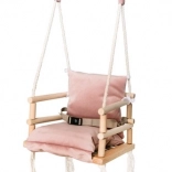 Stylová dětská houpačka pro děti od 12 měsíců s měkkými poduškami z materiálu CLEANABOO, který nevsakuje tekutiny. Bezpečné dřevěné provedení s zaoblenými hranami, pevnými lany a bezpečnostním pásem pro pohodlné a klidné houpání doma.