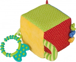 Měkké textilní provedení bez tvrdých hran je ideální pro kojence a bezpečné na hraní doma i na cestách.