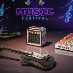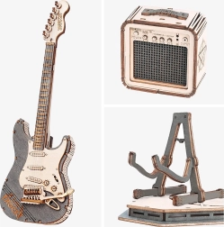 Toto dřevěné 3D puzzle elektrické kytary potěší všechny milovníky muziky i elegantních dekorací. Model je navržený pro vystavení – bez pohyblivých částí, s čistým přírodním vzhledem a precizně vyřezanými detaily, které vyniknou v každém interiéru.