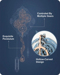 Užijte si uklidňující tikot a plynulý pohyb kyvadla. Otevřený design s převody zvýrazňuje mechanickou krásu hodin a podporuje vintage styl interiéru.
