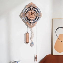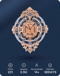 Tento DIY model propojuje relaxační zážitek ze skládání a praktickou funkci. Po sestavení se nástěnné hodiny stanou elegantní dominantou místnosti – s římskými číslicemi, zdobnými ornamenty a viditelnými převody, které podtrhují jejich vintage charakter.