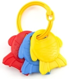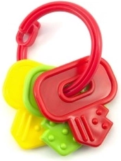 Lehké a snadno uchopitelné chrastítko ve tvaru klíčů je ideální pro nejmenší ručičky. Tři plastové přívěšky vydávají příjemný chrastivý zvuk, který upoutá pozornost miminka a pomáhá rozvíjet jeho smysly. Odolné provedení je vhodné pro každodenní hraní doma i na cestách.