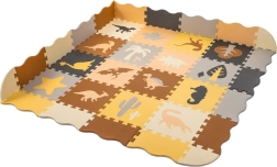 Podložku lze použít jako velkou hrací plochu 143 × 143 cm nebo sestavit ohrádku 113 × 113 × 16 cm. Měkká EVA pěna tlumí nárazy, izoluje od chladu a neklouže. Materiál je snadno omyvatelný – stačí přetřít vlhkým hadříkem. Elegantní neutrální paleta ladí s moderním interiérem a může nahradit koberec v dětském pokoji.