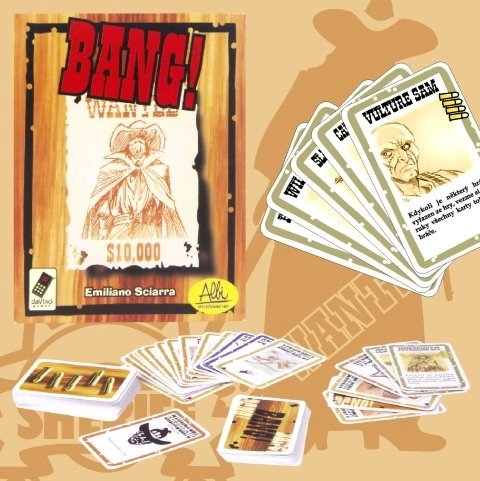 ALBI Bang! je kultovní karetní hra, ve které rozhodují správné tahy, odhad soupeřů a trochu štěstí. Každý hráč má tajnou roli a unikátní postavu se speciální schopností. Sledujte protivníky, chraňte spojence a používejte karty střelby, vybavení i léčivých nápojů, abyste přežili až do poslední kulky.