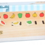 Objevte zábavnou dřevěnou vkládačku, která dětem pomáhá s učením a hrou zároveň. Obsahuje 5 zasouvacích desek a 50 čtverečků se symboly, díky nimž si děti procvičí rozpoznávání barev, tvarů, zvířat, ovoce, oblečení i číslic. Pevná dřevěná konstrukce a bezpečně uzavíratelné víko se 2 západkami zajišťují snadné ukládání všech dílků a pořádek po hře.