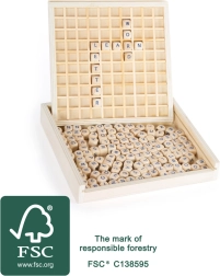 Tato dřevěná hra je skvělou pomůckou pro rozvíjení jazykových dovedností. Herní deska má připravená okýnka, do kterých můžete umístit písmenkové kostky, což zajišťuje jejich pevné umístění během hry.