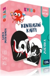 Kontrastní karty Kvído – Zvířátka jsou navržené speciálně pro nejmenší děti, které nejlépe vnímají výrazné kontrasty. Sametový povrch karet stimuluje hmat a podporuje smyslový rozvoj, zatímco syté barvy přitahují pozornost a pomáhají trénovat soustředění. Díky praktické bílé stužce můžete karty propojit do série a upevnit je k postýlce nebo kočárku.