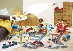 Velká dřevěná garáž VILAC Vilacity je perfektní centrum městské dopravy pro všechny malé závodníky. Díky promyšleným mechanickým detailům, jako je funkční výtah, závora a myčka, děti rozvíjejí jemnou motoriku, fantazii i logické myšlení. Set obsahuje dvě autíčka a helikoptéru, takže hra může začít ihned po sestavení.