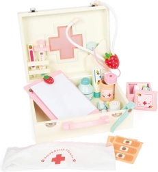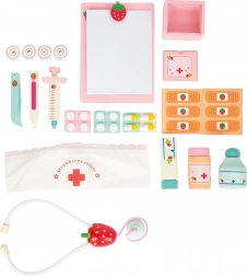 Tento kvalitní dřevěný doktorský kufřík Small Foot Isabel je ideální pro dětské hry na profese. Set obsahuje 24 kusů příslušenství včetně textilní čelenky s červeným křížem a barevných lékařských nástrojů se jahodovým motivem, které potěší každé dítě.