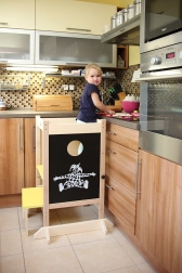 Tato robustní učicí věž je praktickým pomocníkem do každé domácnosti s malými dětmi. Umožní dětem být v úrovni pracovní desky, lépe vidět, co děláte, a bezpečně se zapojit do vaření, pečení či tvoření. Odolná dřevěná konstrukce z bukového a smrkového dřeva zajišťuje stabilitu a dlouhou životnost.
