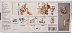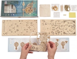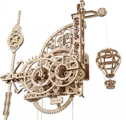 Ugears Aero jsou nástěnné mechanické hodiny z kvalitní překližky, které si sami sestavíte bez lepidla. Fascinující pohled na odhalený hodinový strojek s kyvadlem a závažím zprostředkuje jedinečný zážitek z přesného inženýrství. Čas odečítáte z dvojice ciferníků otáčejících se proti směru hodinových ručiček, zatímco dekorativní model horkovzdušného balónu pravidelně stoupá a každou celou hodinu se poklesem připomene.