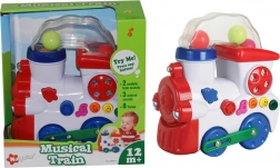 Tato hravá hudební mašinka přináší dětem spoustu podnětů a zábavy. Jednoduché ovládání pomocí tlačítka ve tvaru hvězdičky spustí jízdu mašinky, během které z komínu vylétají balonky. Realistické zvuky vlaku, barevná světla a pestré melodie přirozeně rozvíjejí sluch, zrak i motoriku.