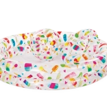 Užijte si léto na zahradě s tímto kompaktním dětským bazénem se vzorem ovoce a praktickou sadou: nafukovací bazén, plovací kruh a plážový míč. Vyrobeno z odolného testovaného vinylu, se zpětnou pojistkou na ventilku pro bezpečné používání. Ideální pro osvěžení a vodní hrátky dětí od 2 let (vždy pod dohledem dospělé osoby).