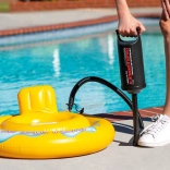 Při každém tahu – nahoru i dolů – proudí do výrobku vzduch. Výrazně tak zkrátíte dobu nafukování oproti běžným ručním pumpám.