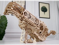 292 precizně laserem řezaných dílků z kvalitní překližky zapadne do sebe bez lepidla. Ozdobné ornamenty a viditelné převody z ní dělají poutavou dekoraci.
