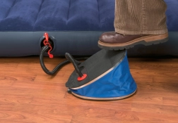 Pumpa je vybavena speciálními drážkami, díky kterým zůstává noha stabilní na jejím povrchu, i během dlouhého a intenzivního pumpování. Součástí balení jsou tři univerzální nástavce, které jsou vhodné pro většinu nafukovacích výrobků. Díky tomu můžete jednoduše nastavit nástavec a rychle nafouknout matraci, míč nebo vodní hřiště.