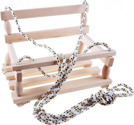 Tato krásná dřevěná houpačka v přírodní barvě je ideální pro venkovní použití na zahradě. Zajišťuje bezpečnost a stabilitu.