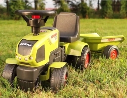 Tento robustní jezdící traktor pro nejmenší nadchne realistickým vzhledem CLAAS a snadnou ovladatelností. Díky odnímatelnému přívěsu si děti mohou vozit své hračky nebo drobnosti z dílny či zahrady, zatímco volant s klaksonem dodá hře na farmáře ještě více zábavy.
