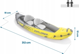Lehký a stabilní nafukovací kajak pro dvě osoby INTEX Explorer K2 je ideální na jezera, klidné řeky a zátoky. Nabízí odolnou PVC konstrukci, 2 vzduchové komory pro vyšší bezpečnost, i‑Beam dno pro stabilitu a pohodlná nafukovací sedadla s opěrkou. V balení najdete 2 hliníková pádla, ruční pumpu a praktickou přepravní tašku.