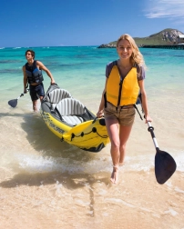 Nafukovací kajak INTEX Explorer K2 je skvělou volbou pro rekreační pádlování ve dvou. Díky nízké hmotnosti, kompaktním rozměrům a rychlému nafouknutí/vyfouknutí se výborně převáží a skladuje. Jasná žlutá barva zvyšuje viditelnost na vodě a postranní madla usnadňují manipulaci na břehu.